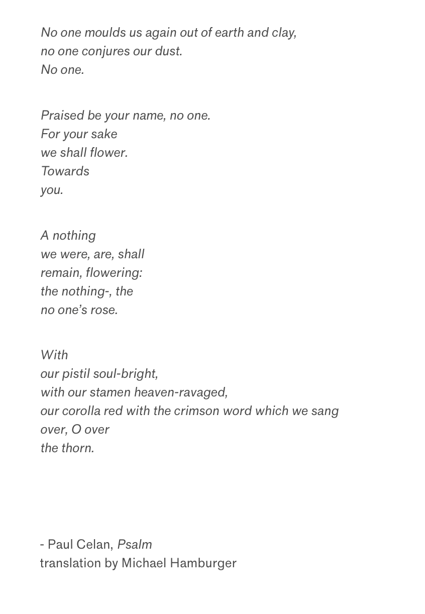 Swinney strives to decentre the self through a complete submergence into the self. Whether this selflessness, or othering of the self, is possible or not the paintings seem to urge the importance of the attempt, and invite the viewer to do the same. To see this attempt as a human responsibility is to try with knowledge of its failure. This moral responsibility of empathy is for and about all life human and natural, familiar and alien. These paintings are about the universal in deep waters of the individual, it is an attempt to stare into the face of Human Nature and seeing there not the romance of idyllic beauty but a troubled tangle of thoughts and pictures, fears and insecurities, a noise of bathing suits and family portraits, and beyond that, silence.